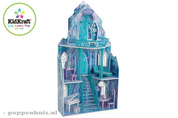 Disney Frozen ijskasteel van Kidkraft. Hiermee kun je de Frozen film tot leven laten komen. Ben jij fan van Anna, Elsa en Olaf? Speel dan de leukste scenes uit de Frozen film na in dit drie etages tellende poppenhuis. Het poppenhuis is 116 cm hoog en bestaat uit drie etages. Inclusief 11 prachtige meubeltjes zoals een piano en een ijstroon.